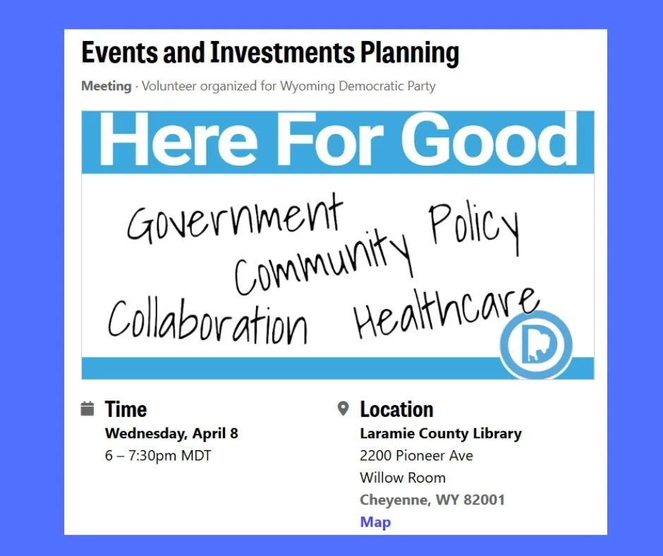 The Laramie County Democrats are thousands of neighbors, parents, veterans, and friends working to make Cheyenne, Pine Bluffs, Burns, Carpenter, and Albin better.